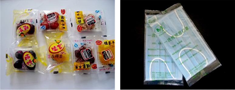 主要适用于包装各类不规则物品、粘性固体物品的包装。例如食品类:果脯、香肠、蛋 糕、蛋卷、速食面、果冻、软糖等;其它类:毛巾,湿巾,套装牙膏牙刷等酒店用品、 胶带、五金件等。